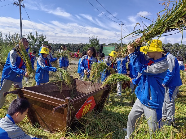“一粥一飯當思來之不易,今天孩子不僅認識了水稻,還體驗了收割、晾曬、打麥、磨面的全過程,在研學導師的指導下制作了研學日記,動手扎了稻草人,這種體驗對他來說不僅新奇,更有意義。”家住市區的周榮趁著“雙節”假期報名了這次的親子研學活動。孩子從市區走進田野,踩進濕軟的泥漿中,才知道想把水稻秧苗種得又直又均勻并沒有想象中容易。