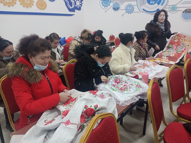 1月11日上午,輪臺縣輪臺鎮(zhèn)克孜勒村科普大講堂內(nèi)一片熱鬧景象,來自本村的20余名農(nóng)民婦女在縣科協(xié)的組織下齊聚一堂,共同品鑒精彩紛呈的刺繡作品。