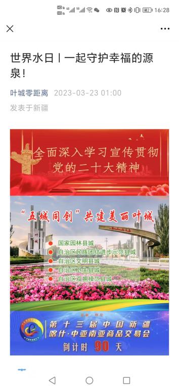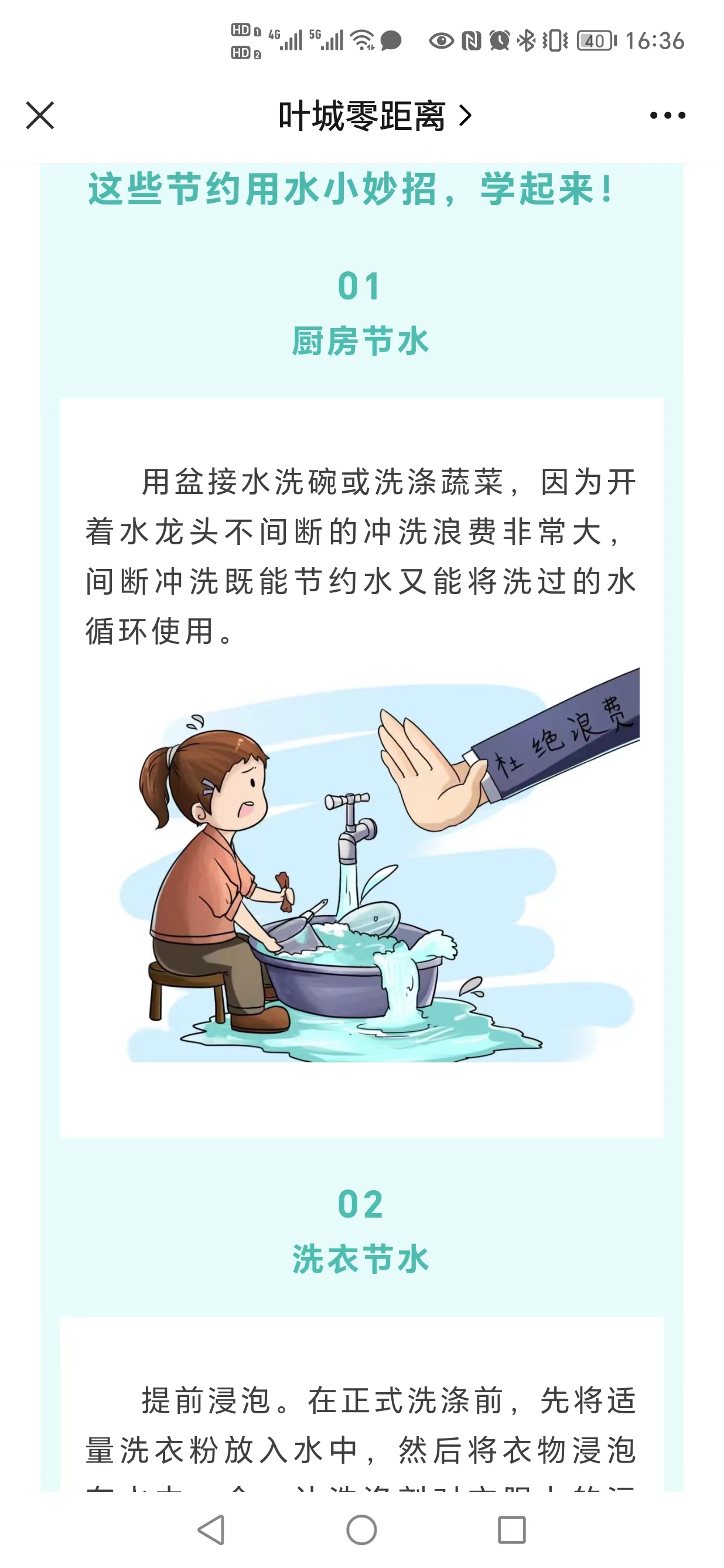 同時,由水利局提供素材,發揮融媒體中心線上科普宣傳優勢,制作“世界水日·一起守護幸福的源泉”為主題的科普內容在葉城零距離公眾號開展線上宣傳,通過圖文并茂,穿插節約用水小妙招,更加直觀向公眾宣傳廚房節水、洗衣節水、洗澡節水、其它節水知識,有效提升群眾節水意識。