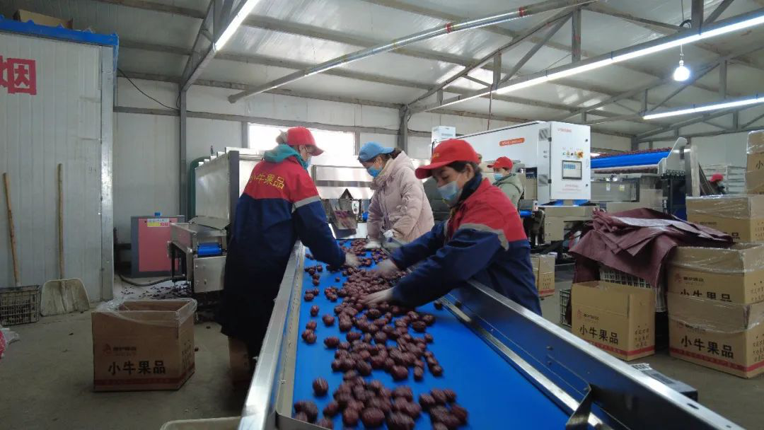 眼下,新和縣科普示范基地--小牛果品農民專業合作社的紅棗進入供不應求的熱銷期。1月1日,合作社紅棗加工車間里,只見生產線上一粒粒色澤透亮的紅棗被分選裝袋,工人們忙著稱重、裝箱、搬運……各類機械轟隆隆地高效運轉著,呈現出一派繁忙景象。在通透敞亮的標準化車間里,清洗機、振動篩、一體化烘干機等先進加工設施一應俱全,散發著農業現代化生產氣息。