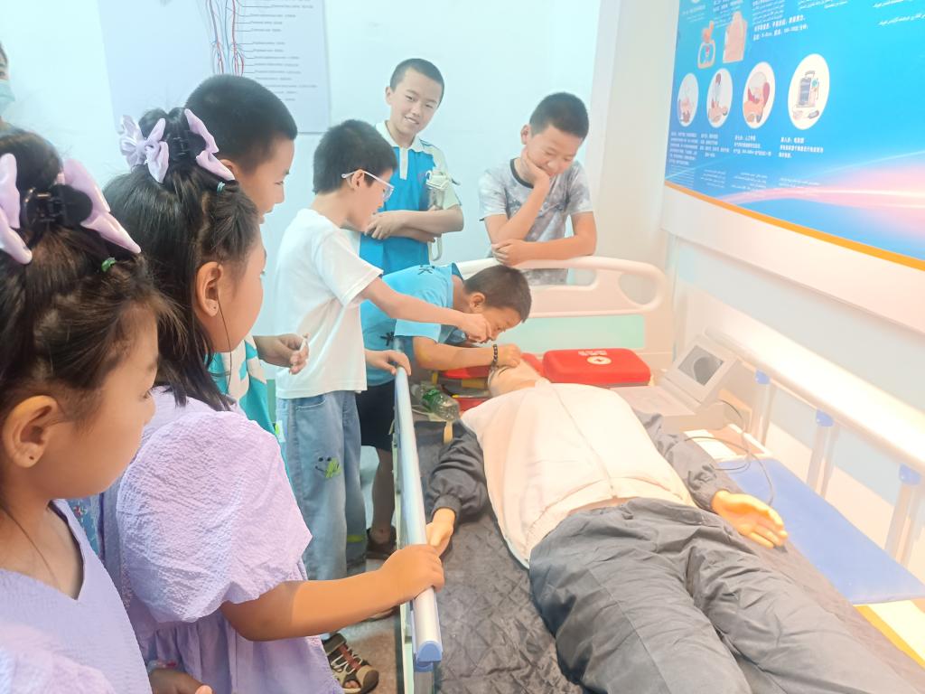 在參觀過程中,同學們井然有序,充滿了好奇心,一個個認真仔細地聽取講解員的講解過程,在科普展區,同學們認真學習水循環、風力發電原理和各類急救知識,并積極動手參與體驗。