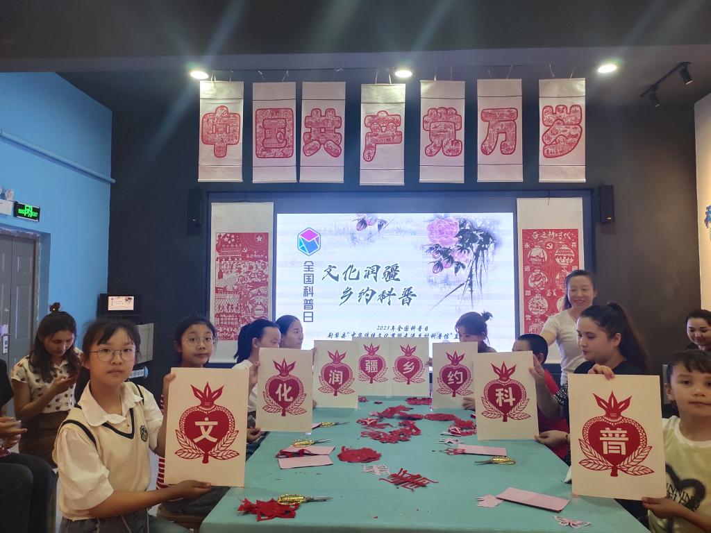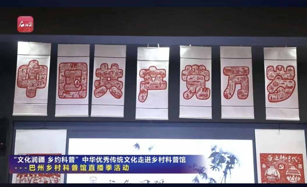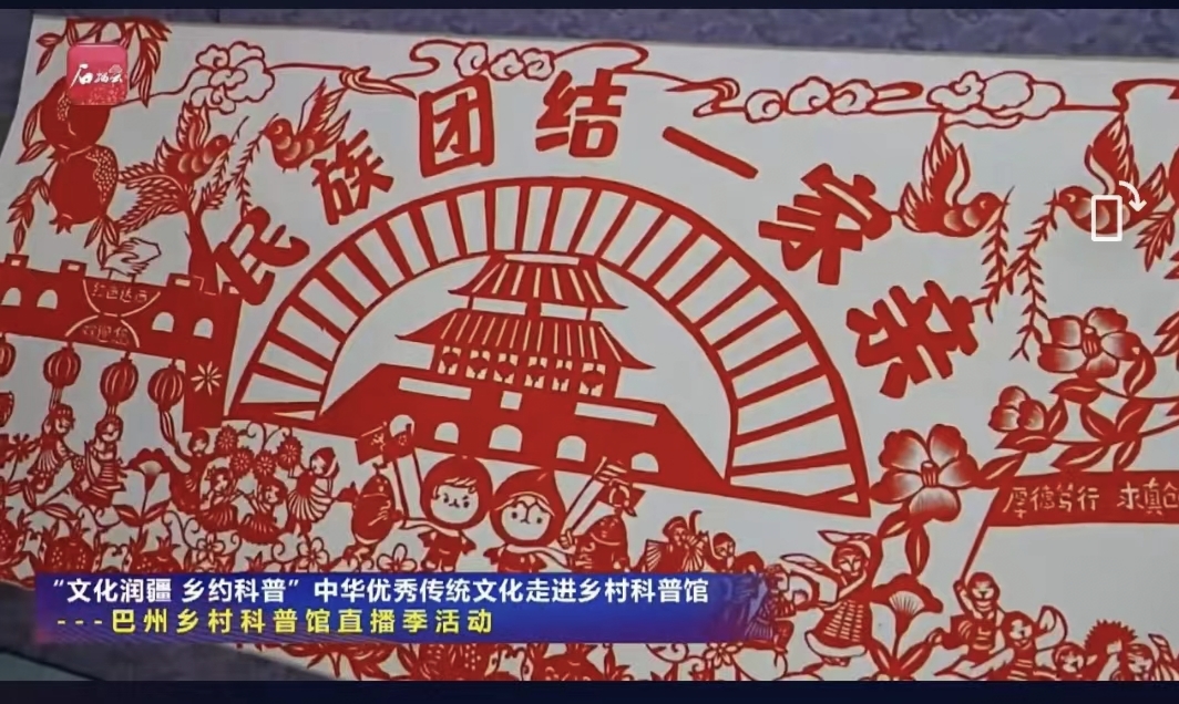 在最后展示湯麗老師和小朋友們的剪紙作品,作品上面展示著“文化潤疆 鄉(xiāng)約科普”八個字,湯麗老師說:鄉(xiāng)村科普館的開放,讓我們在家門口就能享受到科普的大餐。我也希望能夠通過剪紙藝術(shù)給大家送去祝福,傳播文化。