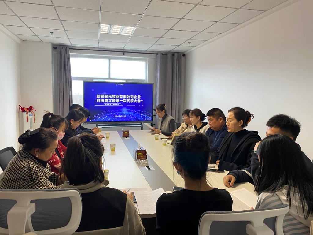 4月11日下午,新疆冠元牧業有限公司企業科協成立暨第一次代表大會召開。塔城市科協副主席馬琳、新疆冠元牧業行政副總楊韜及工作人員出席會議。