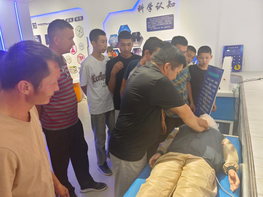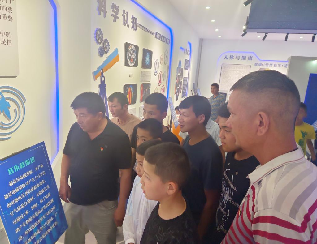 鄉(xiāng)村科普館成為傳播創(chuàng)新文化,普及科學(xué)知識的新陣地。在工作人員的帶領(lǐng)下,父親陪著孩子參觀了人體模型展區(qū),塔爾拉克村黨總支書記阿不拉江·蘇萊曼進(jìn)行胸外按壓動(dòng)作示范,還講解了人工呼吸和掌握心肺復(fù)蘇操作的要點(diǎn)和方法,每一個(gè)人都通過模型感受胸外按壓的標(biāo)準(zhǔn)方式。隨后,他們還參觀了解了超高壓電磁諧振裝置,充分拓展了青少年兒童的認(rèn)知與視野。通過“寓教于樂”的參觀和學(xué)習(xí)過程,激發(fā)了青少年兒童對科技創(chuàng)新的求知探索欲,進(jìn)一步推動(dòng)提升了青少年兒童崇尚科學(xué)文化魅力的求知欲。