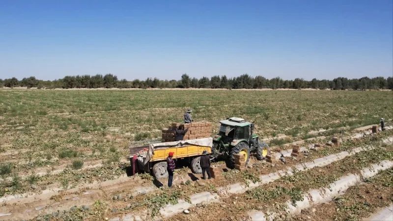10月14日,走進(jìn)民豐縣安迪爾鄉(xiāng),種植戶在田間地頭采摘甜瓜、包裝、搬運(yùn),一派忙碌的景象。