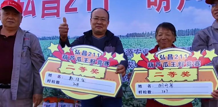 此次葫蘆瓜王評比大賽現場熱鬧非凡。活動前期進行了充分準備,評選程序雖然簡單,但專業評委、贊助商、主持人、獎品一個也不少。在單瓜籽量評選過程中,經過農業專家的三輪挑選、點評,最終評選出一等獎、二等獎、三等獎種植戶所種植的葫蘆瓜。