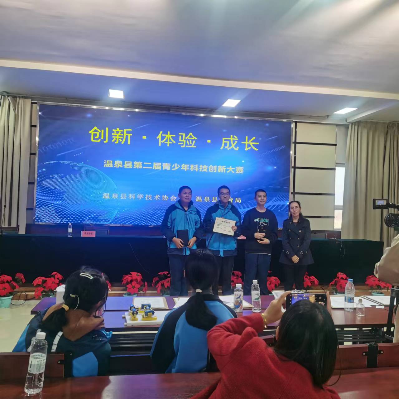 最后,溫泉縣科協副主席及溫泉縣教育局領導給獲獎學生頒發了榮譽證書,給所有參賽學生發放了印有科普內容及“科普中國”“科普新疆”“溫泉科普”二維碼的科普宣傳品。