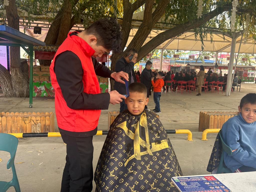 活動現場,來自各部門的志愿者穿著紅色志愿服擺攤設點,提供政策宣講、技術咨詢、科普宣傳、科技體驗展示、農業技術宣傳、醫療衛生義診、免費理發、法律咨詢等各類惠民服務,吸引眾多群眾學習圍觀。