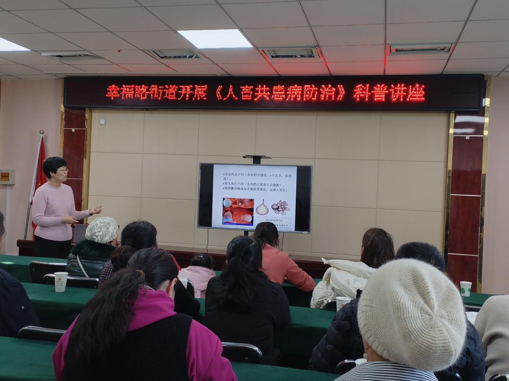 為普及人畜共患病防治知識,有效防范人畜共患病發生,提升全民科學素質,2月28日,天山區科協邀請原烏魯木齊市動物疫病控制與診斷中心的副主任李愛巧老師,在幸福路街道開展《人畜共患病防治》科學防控科普知識講座。幸福路街道轄區飼養寵物居民、寵物店負責人、肉制品銷售店主等40余人參加此次講座。