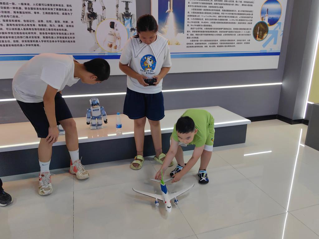 同學們有序走進科普館,親身體驗了VR體驗單車、航模駕駛、機器人互動、無人機駕駛等展品,同時還觀看了航天英雄展、地震科普知識展,閱讀了各類科普宣傳冊,真正感受到科學的神奇魅力。