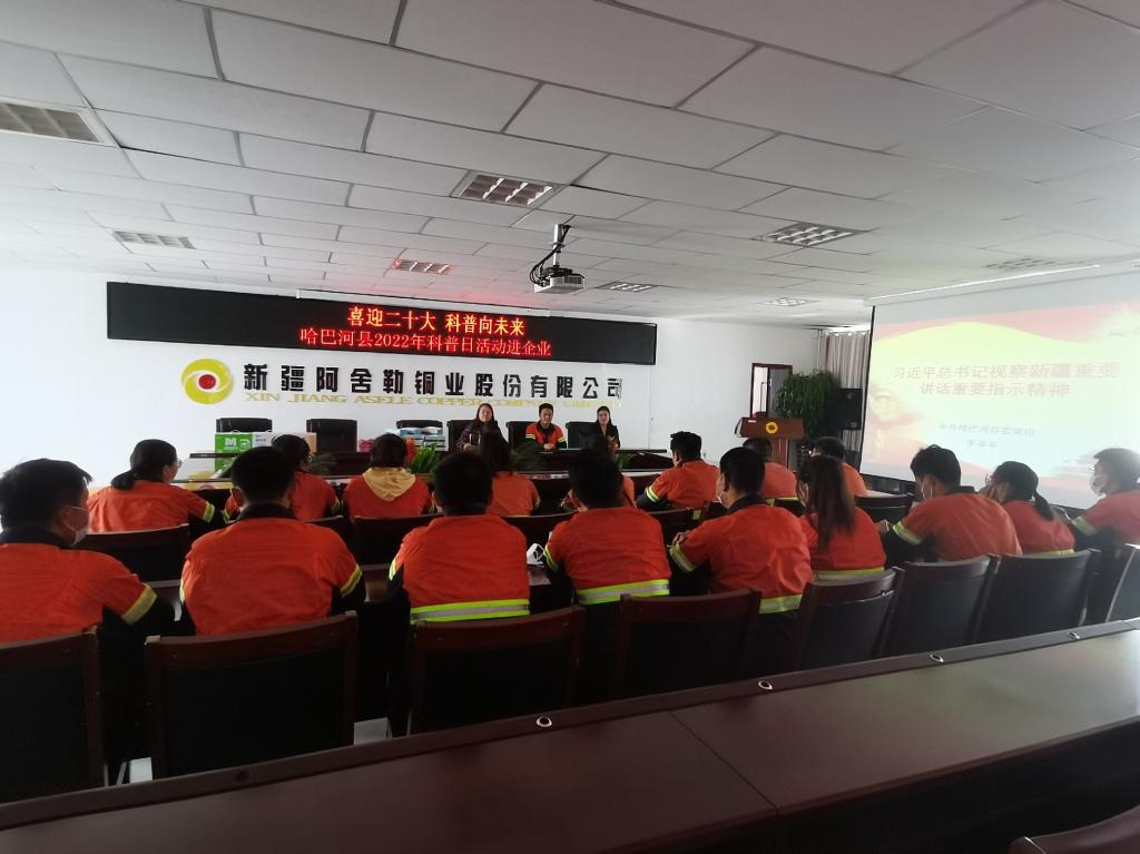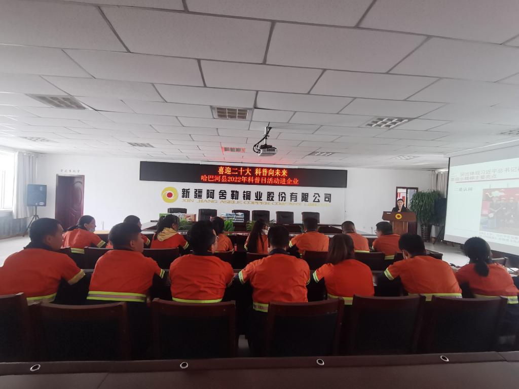 新疆哈巴河縣阿舍勒銅業(yè)是2012年建立的企業(yè)科協(xié),9月15日上午,哈巴河縣科協(xié)以“喜迎二十大 科普向未來”為主題,到企業(yè)開展了科普宣傳活動。活動邀請了縣黨校老師李婷婷同志講課,發(fā)揮理論指導(dǎo)實踐的作用。