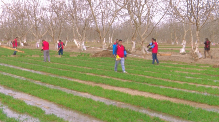 村民阿卜杜凱尤木·麥麥提敏說(shuō):“今年我家種了5畝冬小麥,長(zhǎng)勢(shì)比去年好,現(xiàn)在是冬小麥返青生長(zhǎng)管理的關(guān)鍵時(shí)期,我們每畝地準(zhǔn)備了25公斤化肥,今天在鄉(xiāng)政府科技工作者的指導(dǎo)下給小麥進(jìn)行施肥澆水,后期我也會(huì)按照技術(shù)要求來(lái)管理好小麥,爭(zhēng)取今年有個(gè)好收成。”