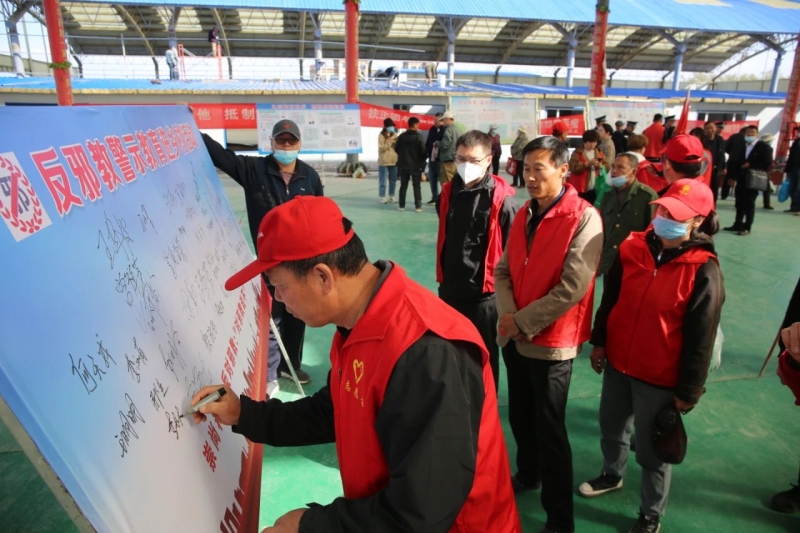 啟動儀式上,精河縣公安局局長趙永海同志號召廣大干部群眾行動起來,堅決抵制邪教,共筑平安防線。活動現場,干部群眾進行了“對邪教說不”簽名活動,表明了反邪教的決心和信心。