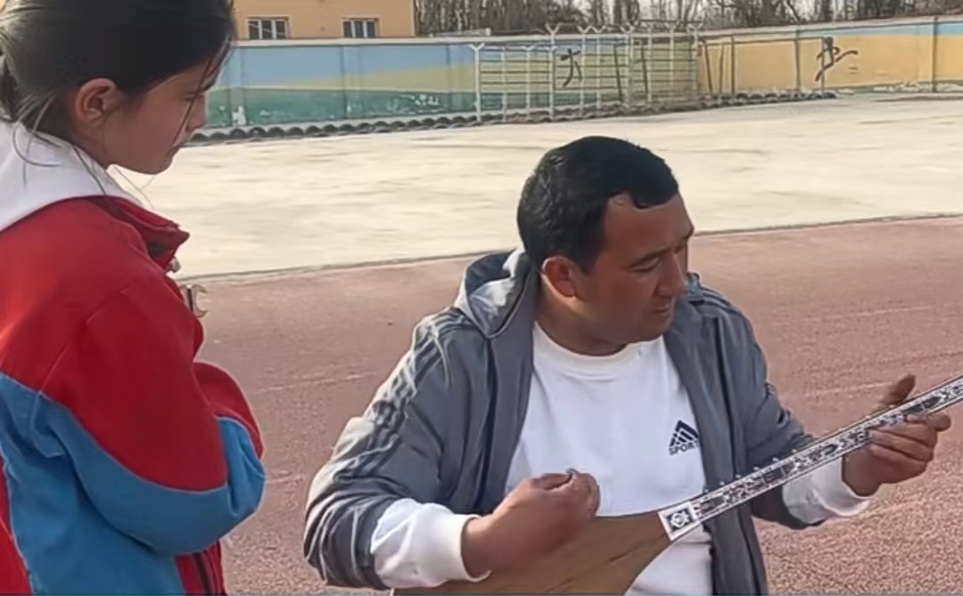 活動現(xiàn)場,科普志愿者向青少年講解非遺的概念、門類、保護傳承等基本知識,介紹中國非遺名錄、新疆非遺名錄,進一步提高青少年對非遺知識的知曉率。邀請新和縣賽乃姆傳承人玉蘇甫·吾斯曼與學生近距離接觸,用深入淺出的語言向學生講解賽乃姆的前世今生、舞蹈特色、傳承保護、社會影響等基本知識,重點講解了賽乃姆樂器的分類、彈奏方式等知識,并親自演奏,與學生們載歌載舞,感受賽乃姆的魅力。同時,邀請青少年一起演奏,對其指法、姿勢進行指點,以便他們能更好地掌握賽乃姆的彈奏技巧。