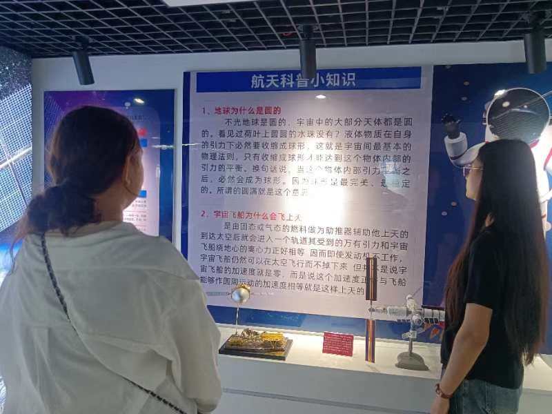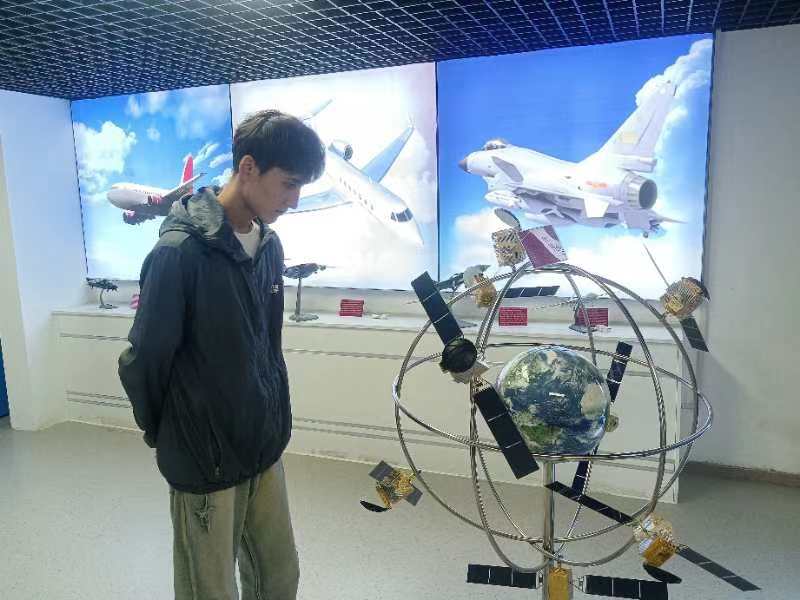 進(jìn)入展廳,各種科技模型映入眼簾,有航空航天展區(qū)、“兩彈一星”展區(qū)等。在科普館講解員的帶領(lǐng)下,同學(xué)們一邊聆聽講解,一邊閱讀模型旁邊的注釋,情不自禁的摸摸這個(gè)飛機(jī)模型、看看那個(gè)潛艇模型,心中的喜悅無以言表。