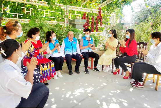 為了讓村民們深入學習習近平總書記視察新疆重要講話重要指示精神,真正讓習近平總書記重要講話精神“飛入尋常百姓家”,宣講員利用“板凳課堂”,以拉家常的方式宣講,與群眾進行面對面交流,了解群眾心里所想、生活所需,與群眾一起回顧黨的光輝歷程,對比惠民政策為百姓生活帶來的巨大變化,進一步增強了各族群眾的安全感、幸福感、獲得感,更加堅定了大家聽黨話、感黨恩、跟黨走的信心和決心。