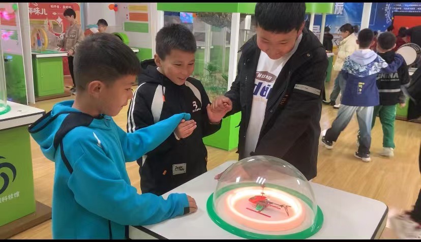 在工作人員的引導下,同學們參觀了一樓基礎教育展廳,參觀并體驗了“自己拉自己”“拔河比賽”“龍卷風”“AR小畫家”等各類展具……一些學生們左摸摸右瞧瞧,好奇得不得了,玩得停不下來。另一些學生們則認真閱讀每一項科技展具的說明,在玩耍的同時,也掌握了不少科學知識。