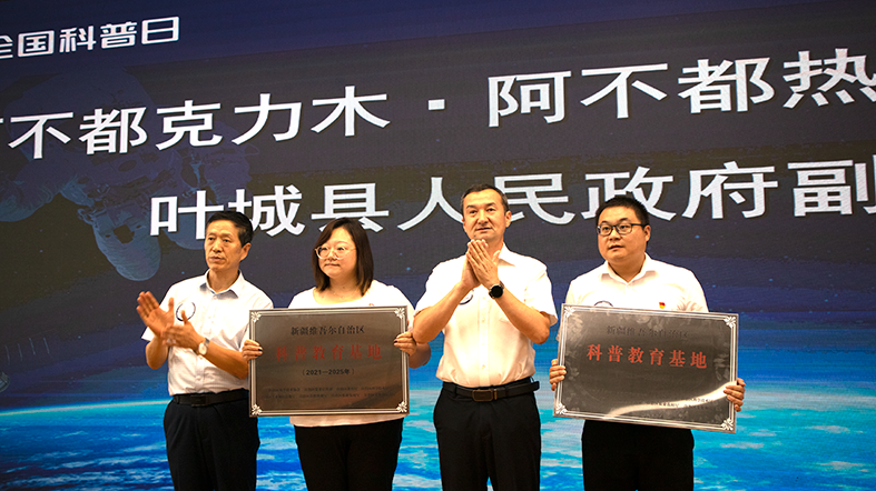 此活動與2023年全國科普日第四屆“中國飛天夢—科普萬里行”活動相融合,儀式現場葉城縣科協主席向大家介紹了舉辦2023年全國科普日活動的主要內容、目的、意義,并號召大家積極參與科技創新、科學普及活動,為葉城縣高質量發展貢獻科技力量。葉城縣人民政府副縣長阿不都克力木·阿不都熱西提為2023年申報命名的自治區科普教育基地進行授牌(葉城縣鄧纘先紀念館、白楊鎮10村筑夢星空展教館)。