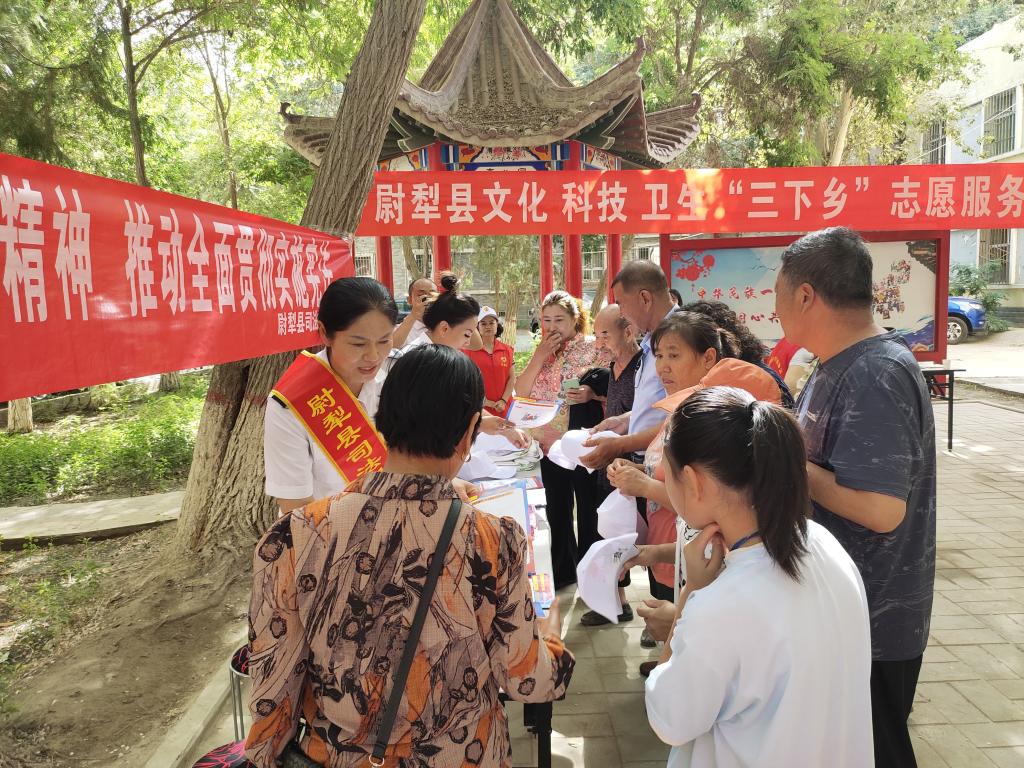 尉犁鎮、團委、縣司法局、教科局及其駐社區工作隊的工作人員熱情地為群眾發放科技報刊和書籍等宣傳資料,并提供法律援助、文明習慣養成、電信詐騙等方面的科普咨詢服務,不斷深化新時代文明實踐工作,推動“志愿行動”融入科普活動。