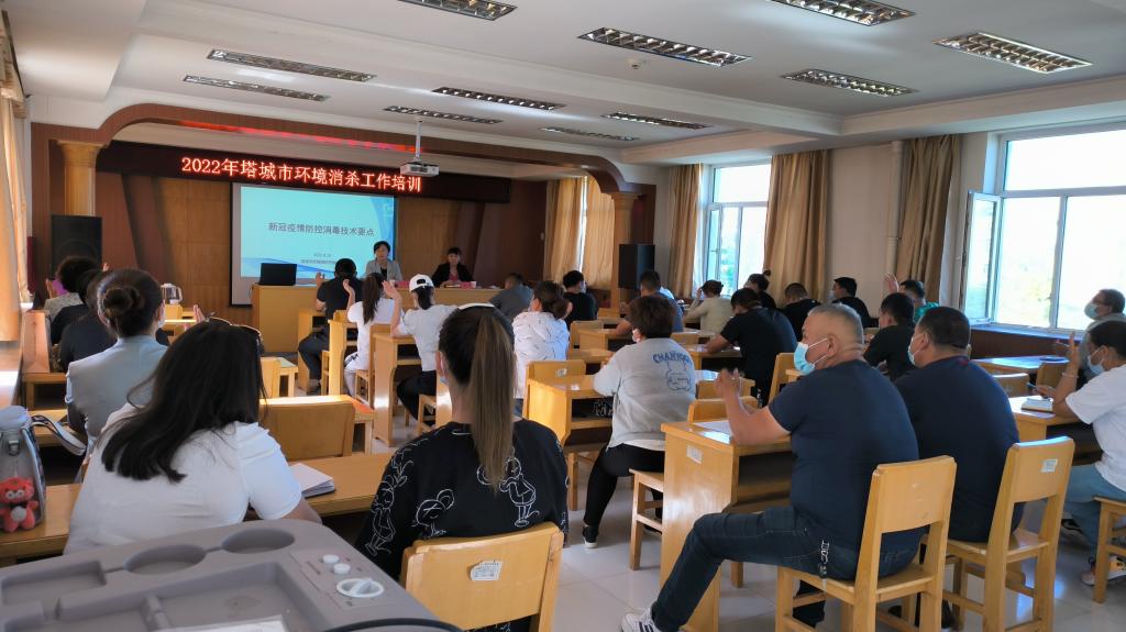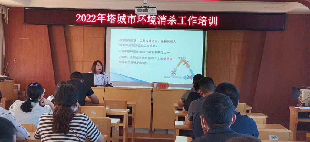 2022年8月25日,在全國科普日活動期間,面對當前嚴峻的疫情形勢,為進一步提高對醫療機構消殺工作重要性的認識,壓實消殺工作主體責任,充分認識精準規范消殺在疫情防控中的重要作用,開展科學精準消殺工作,塔城市科協與塔城市疾控中心科技志愿者隊伍聯合對全市各醫療機構開展二級消殺師資隊伍培訓。塔城市政府副市長史雪霞及各鄉鎮街道分管領導共計38人參加了此次培訓會。