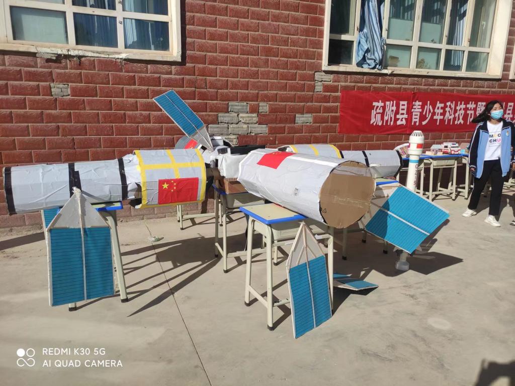 在此次科技節科技小制作環節,最引人注目的是一件用紙板和泡沫制作出來的空間站模型。這個模型是由5位同學利用課余時間制作出來的,一展出來,便引來了很多師生圍觀,大家交口稱贊這件作品的精美,同時也為學生們超強的動手能力所折服,圍觀的師生對布展的老師圍繞這件展品是怎么制作出來的,拋出了很多問題,在得到老師詳細的解答后,很多同學紛紛表示自己回家也要制作一個。