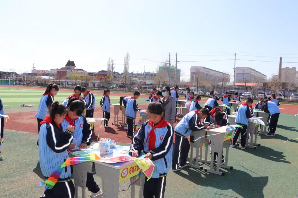 此次活動分為繪畫和放飛兩個環節,鼓勵學生們自己動手繪制風箏?;顒蝇F場,學生們兩兩一組在操場上,用畫筆在風箏上繪畫科幻畫,大家拿著自己精心繪畫的風箏參加活動,有的風箏上畫著“太空人”,還有風箏描繪著“遨游太空”“宇航員”……隨著塔城市科協工作人員的一聲令下,學生們緊握著風箏線,迎著春風快樂奔跑,無數的風箏乘風而起,在藍天中翩翩起舞。學生們奔跑的身影、開心的笑臉、舞動的風箏與美麗的校園構成了一幅和諧的畫卷。