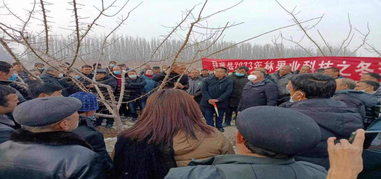 推進會上,結合拜城縣林果業產業發展實際,哈力甫·奧斯曼對果樹冬季修剪、精準水肥協同高效管理、抵御低溫凍害綜合防治、有害生物綜合防控等關鍵技術,核桃樹盤覆膜、核桃疏密、杏樹整形修剪等工作全面講解,并對果農日常管護過程中遇到的問題和困難進行了解答。