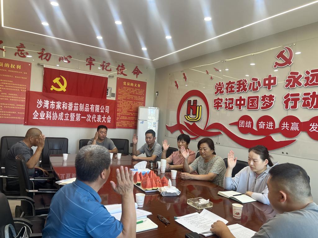 會上宣讀了沙灣市家和番茄制品有限公司科協成立籌備工作報告、沙灣市科學技術協會同意公司科協成立的批復,審議通過了《沙灣市家和番茄制品有限公司科協章程》,審議通過了企業科協第一屆委員會名單,選舉產生了公司科協委員會主席、副主席、秘書長及副秘書長。