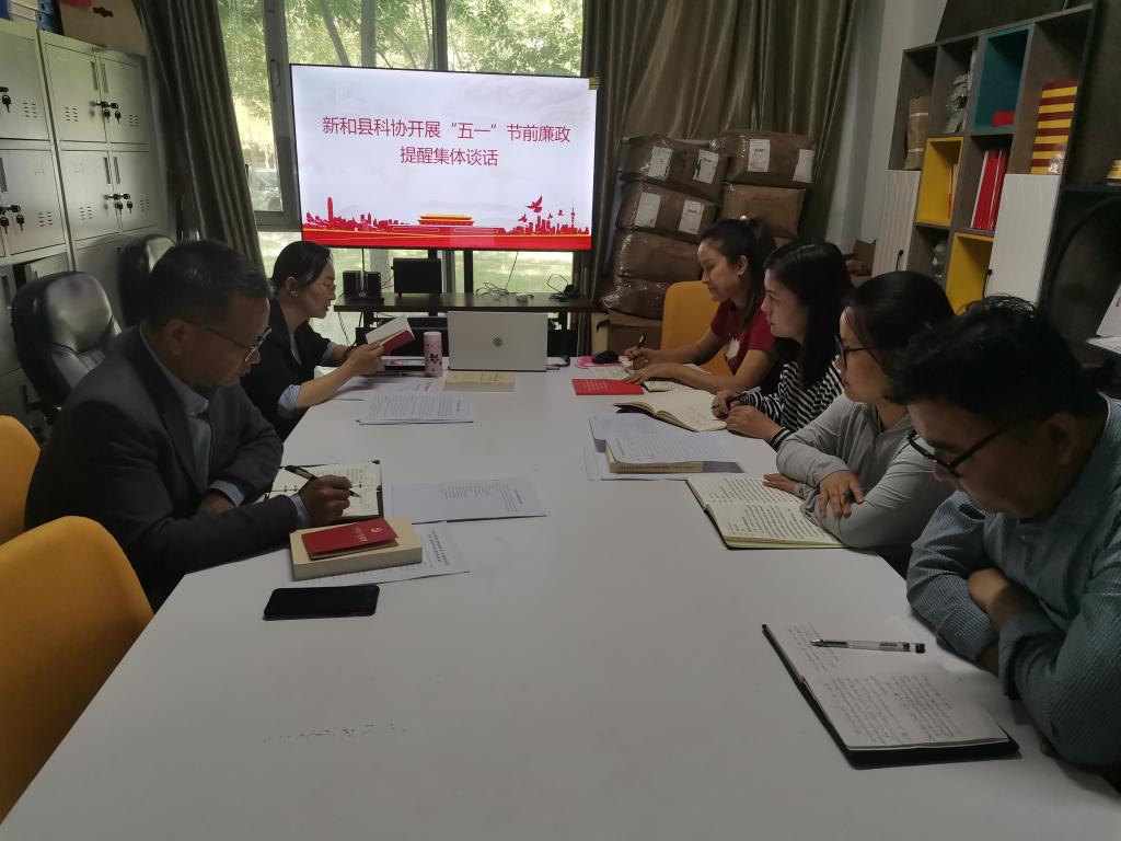 4月30日上午,新和縣科協召開開展“五一”節前廉政提醒集體談話活動,全體干部職工參加。