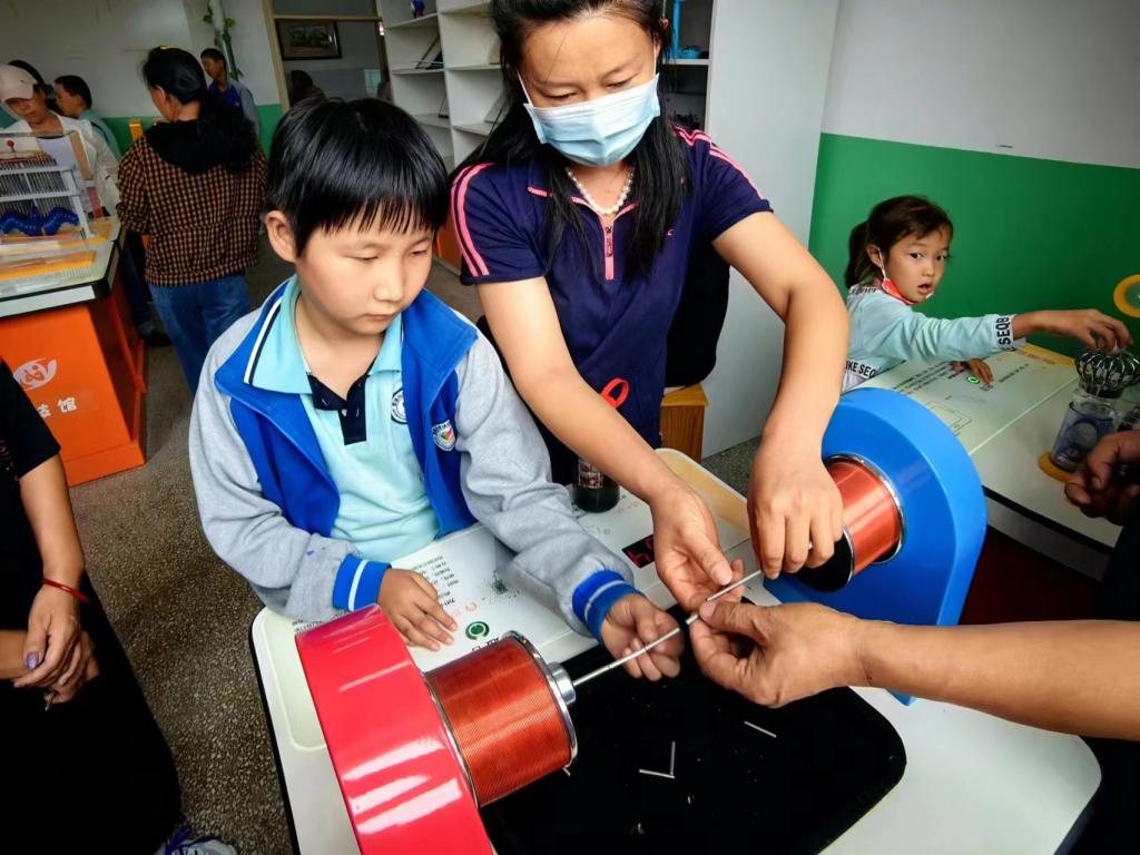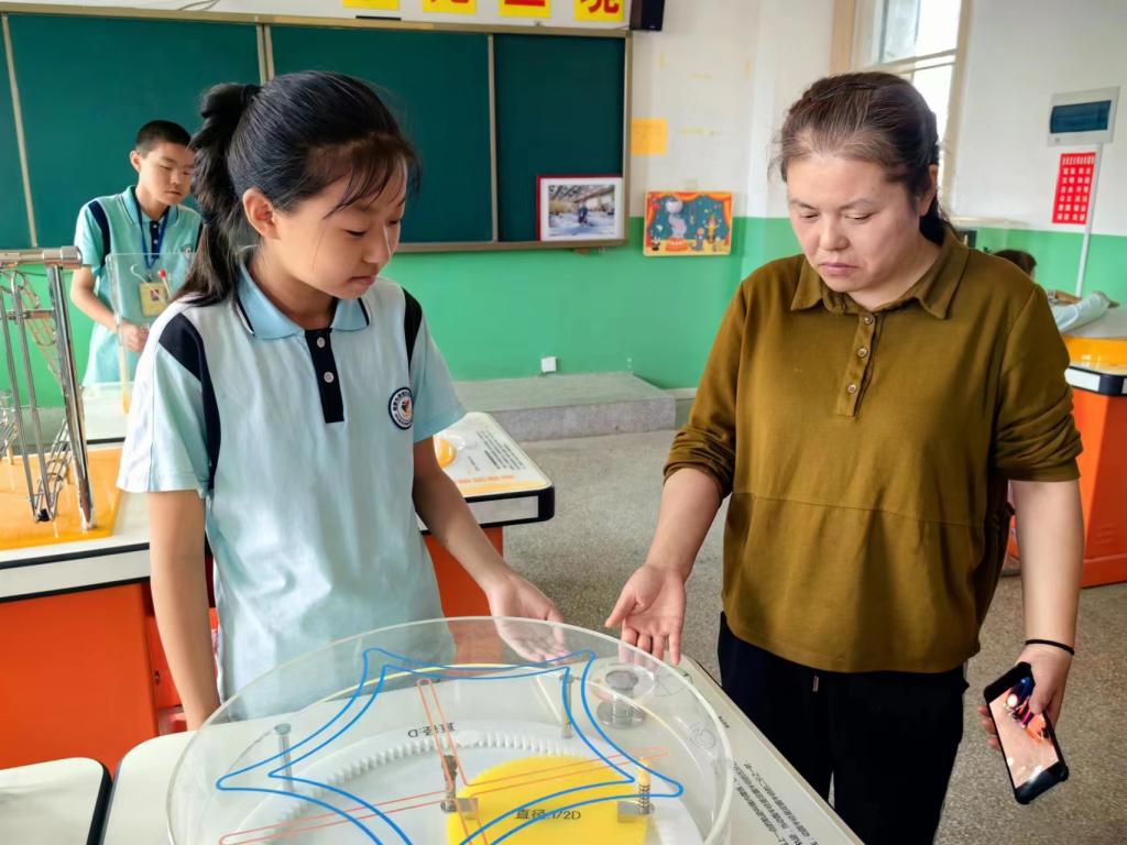 在科學老師的帶領下,學生和家長走進哈圖布呼鎮中心學校科普館,孩子們和媽媽們一同參觀科普館常設展具,就眾多科普常識和科技原理進行了針對性的學習,并共同錄制了“我和媽媽學科學 美麗家鄉我代言”系列科普視頻。一個個寓教于樂的科普展品將大家帶入了科技世界,讓大家在輕松愉悅的氛圍中獲得科學知識,為孩子們打造了一堂富有藝術氣息的科普課堂。