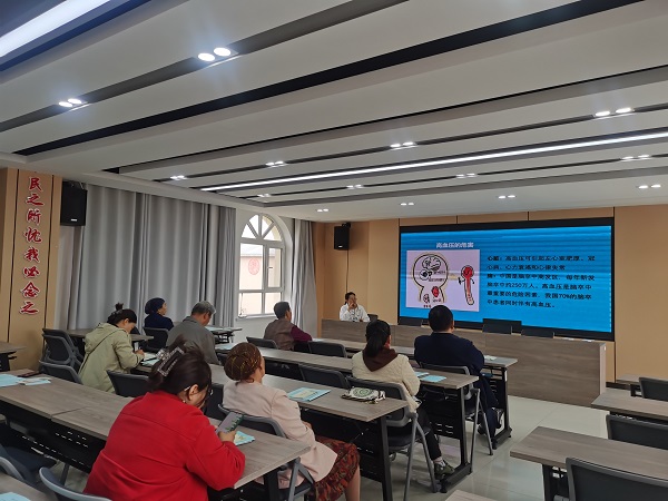 王春花醫生圍繞高血壓和慢性病兩方面為大家進行科普。講座中,居民們提出問題,王醫生一一解答,現場氣氛非常熱烈。