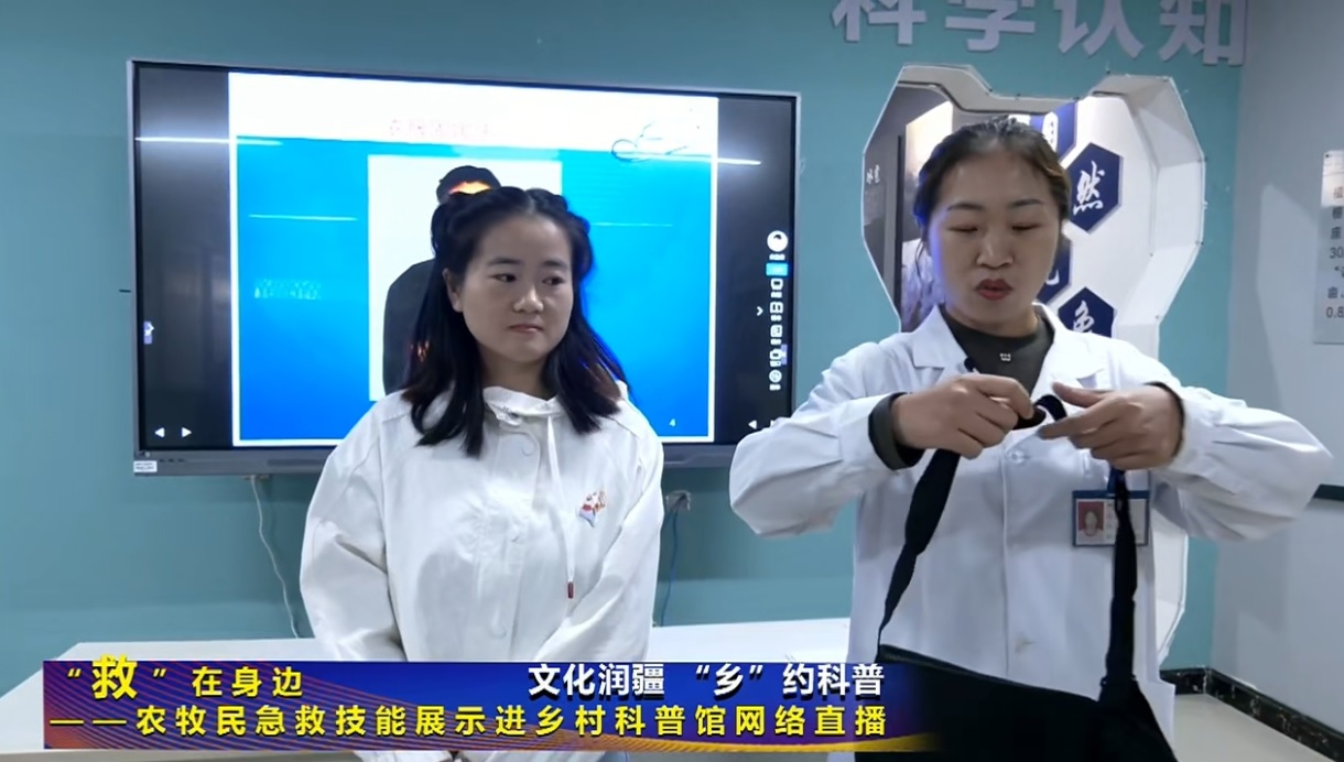 2023年10月8日,和碩縣開展“救”在身邊農牧民急救技能展示進鄉村科普館直播活動。本次直播活動,特別邀請和碩縣蘇哈特鄉衛生院醫生陳圓圓,為大家詳細介紹和展示如何進行創傷、扭傷及骨折的包扎等救護技能。