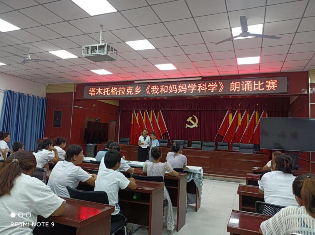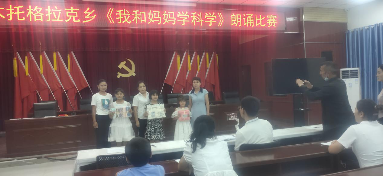 8月3日,新和縣塔木托格拉克鄉組織開展了“我和媽媽學科學 美麗家鄉我代言”為主題朗讀比賽,9組親子參加了此次活動。