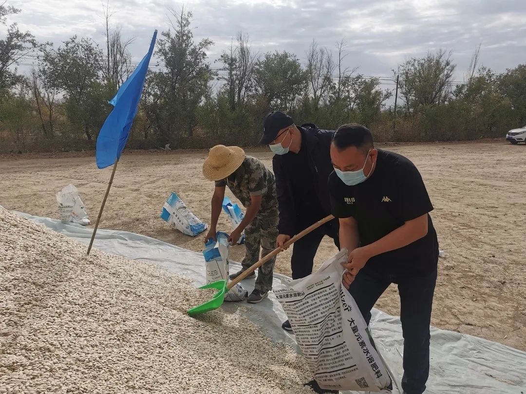 田間地頭,處處可以看到身穿紅馬甲的志愿者,秋收助農為群眾送去溫暖。搶收過程中,大家都爭著干、搶著干,不怕臟、不怕累,干得熱火朝天,經過10多個小時的齊心勞作,搶收打瓜籽20余噸,確保秋糧顆粒歸倉。