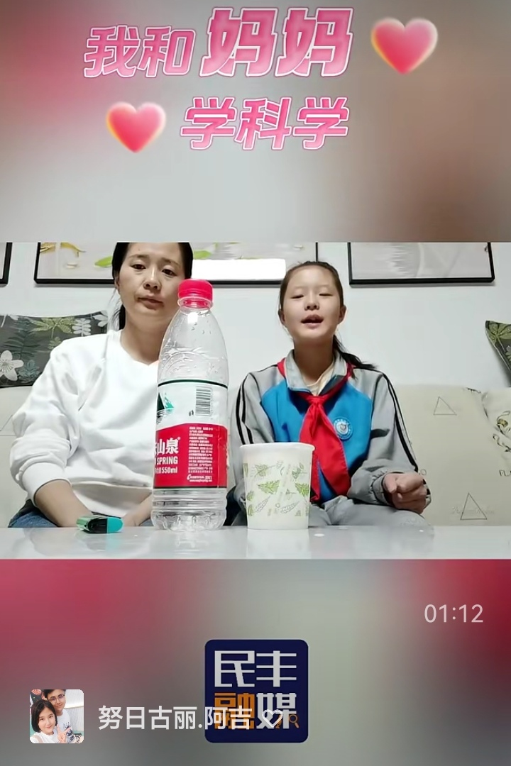 截至目前,參與活動的學生及媽媽共計372人,拍攝學生和媽媽們一起做科學實驗、參觀學校科學實驗室等短視頻共186個,其中有39個高質量科學實驗短視頻在“民豐零距離”發布,186個高質量科學實驗短視頻在抖音平臺發布。
