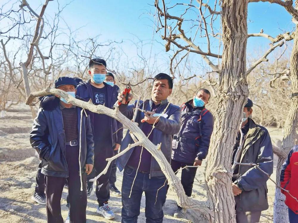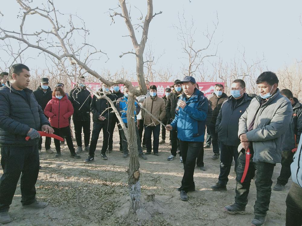 2月18日,若羌縣科協邀請若羌縣林果業專家在若羌縣吾塔木鄉開展棗樹修剪、管護等技能培訓活動。