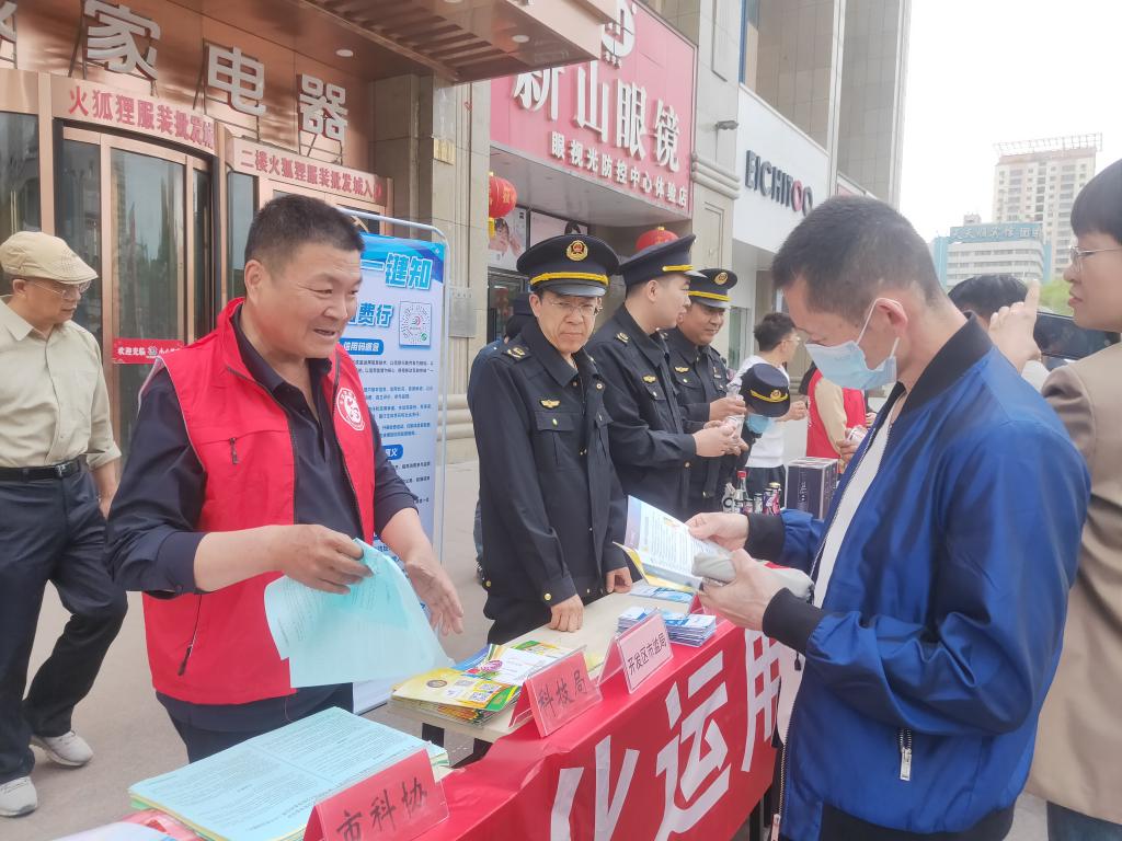 4月25日,多部門在市中金廣場(chǎng)聯(lián)合開展知識(shí)產(chǎn)權(quán)宣傳周科普志愿服務(wù)活動(dòng)?;顒?dòng)現(xiàn)場(chǎng),市科協(xié)面向群眾積極開展知識(shí)產(chǎn)權(quán)和健康科普知識(shí)宣傳,免費(fèi)發(fā)放《知識(shí)產(chǎn)權(quán)維權(quán)宣傳單》《健康科普手冊(cè)》等各類科普宣傳物品450份。