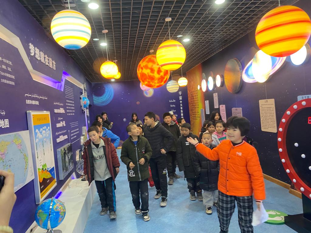 參觀過程中,孩子們帶著興奮、好奇的心情,在各位小小講解員的引導下進入鄉村科普館內。映入眼簾的3D浮雕設計、七大行星的介紹、人類的起源……一系列場景深深吸引著孩子們,小小講解員們通過自己生動的語言講述自己眼中的科學,參觀的孩子們也聽得津津有味。館內展品也吸引著大家,紛紛走上前,體驗科學的神奇,感受科學的魅力。