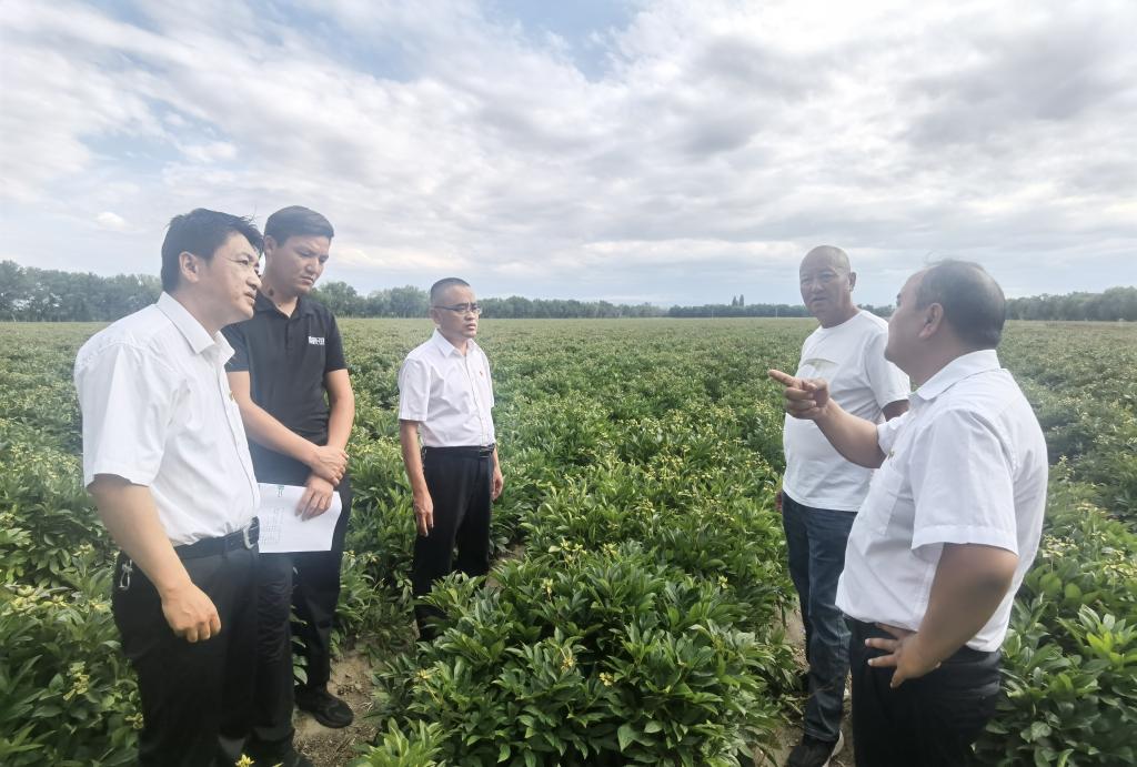 吉也克鎮特色種植合作社是本鎮第一家打破全鎮單一種植玉米、打瓜的種植結構,試種芍藥并成立的合作社。在田間地頭,調研組一行認真查看了芍藥的生長情況,仔細詢問經營情況、發展路徑及主要研發投入方向,合作社負責人楊紅耀詳細介紹了今年以來的氣候特點、土壤環境及在田間管理等方面的做法。調研組表揚了合作社輻射帶動周邊村民參與庭院種植的做法,希望合作社和周邊村民加強溝通交流,總結積累經驗,鼓勵合作社積極爭取科技政策項目,積極提出對科技人才、技術需求的建議,把發展和科技牢牢結合在一起,打造“黨建+科普+旅游”發展模式,使得企業依靠科技健康發展。