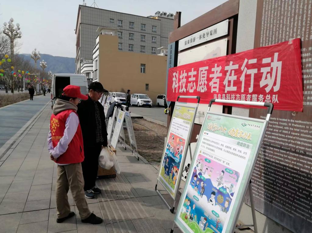 4月7日,溫泉縣科協協同縣司法局在溫泉縣客運站門口開展科普宣傳活動。