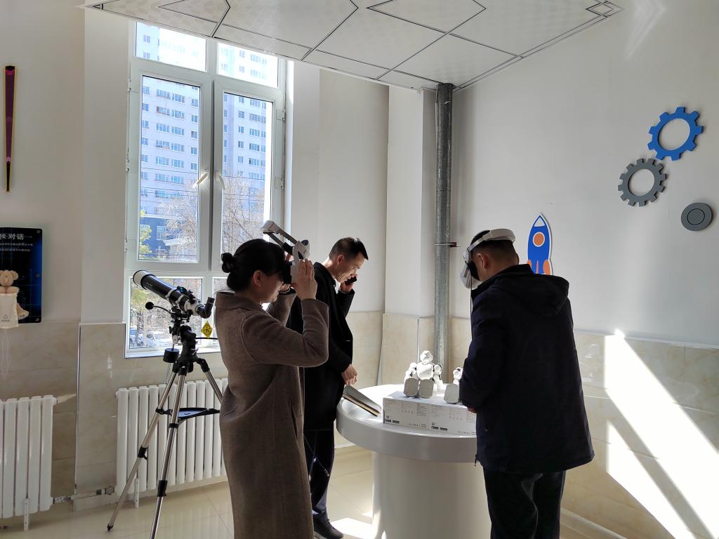 在二樓創(chuàng)客空間,科技輔導(dǎo)員們認(rèn)真觀看、現(xiàn)場(chǎng)體驗(yàn)了“激光通訊”“水漩渦”“看得見的聲波”“弦長(zhǎng)與音調(diào)”“過山車”“仿真雷電”“能吹滅的燈”“3DVR眼鏡”“阿爾法機(jī)器人”等展展品展具。
