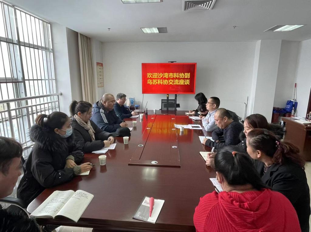 近日,沙灣市科協一行4人來到烏蘇市科協開展工作交流座談,烏蘇市科協全體工作人員參加此次交流座談活動。
