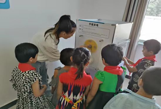 活動現場,老師通過地球儀對照演示的方法為孩子們介紹了有關地球儀、地軸、南極、北極、五大洲四大洋及我國在地球儀上的位置等科普知識,并有序組織孩子們觀看圖片、實物,讓孩子們親身感受手搖發電機,進一步加深了對科技發展的直觀認識,更好體驗與生活息息相關的科學知識,使孩子們對我們祖國和世界的地理分布有了更加清晰的了解。