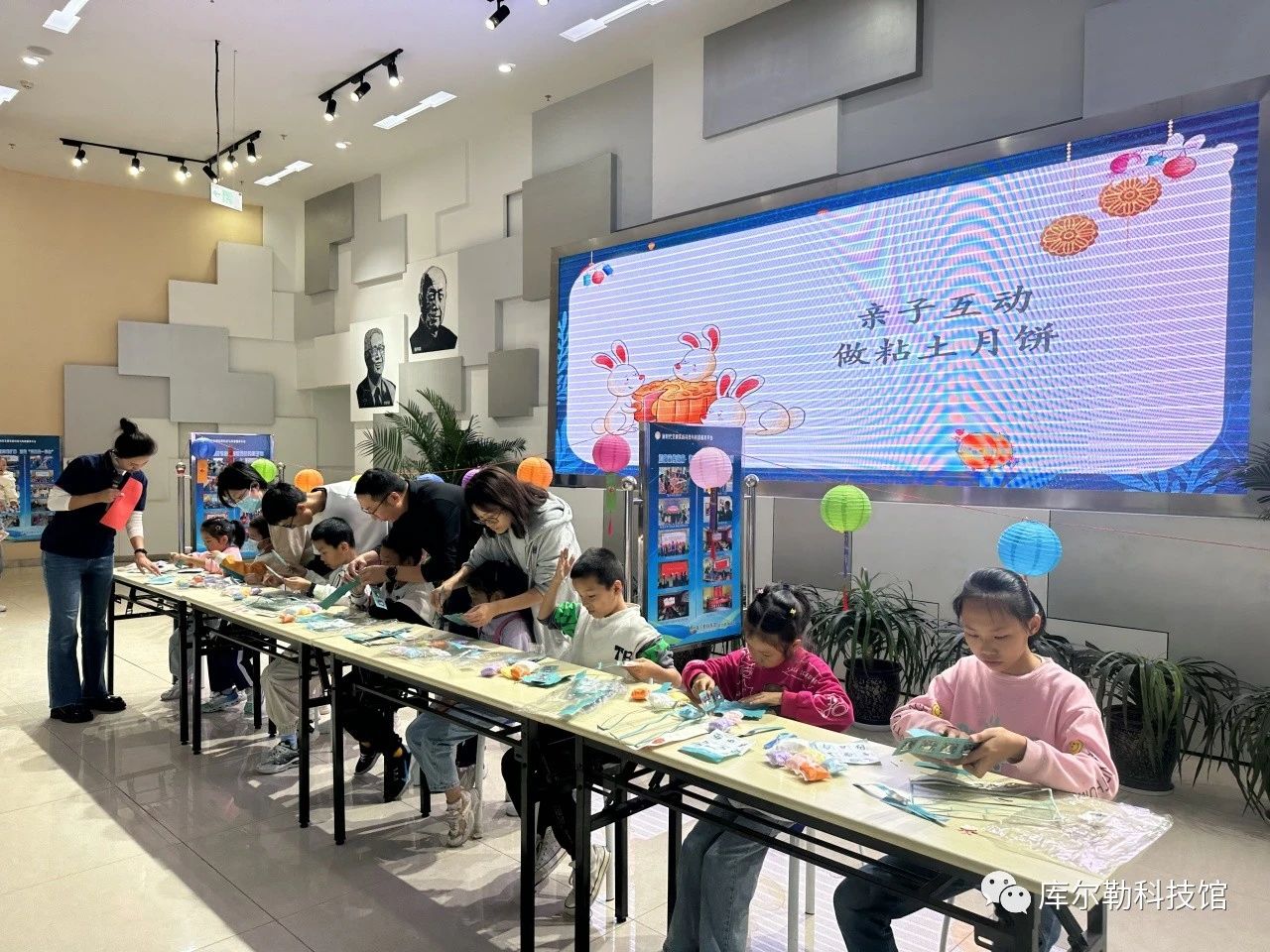活動當天,庫爾勒市科技館開放球幕影院,邀請小朋友們觀看科普短片“探月圓夢”,讓大家在科技館欣賞到了別樣的“中秋圓月”。親子互動做粘土月餅環節,輔導員老師帶著大家用超輕粘土制作月餅,再用玲瓏寶盒裝好,通過親子共同制作,讓孩子感受中秋節歡樂的同時,感受節日的團圓氛圍。