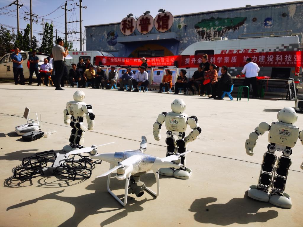 巴州科協的科技志愿者在科普館門前空曠的場地操控無人機,向在場的村民展示無人機的穩定性和靈活性,并講述無人機在農田監測、森林防火等農業領域的實際應用,讓村民們了解無人機的實用價值。