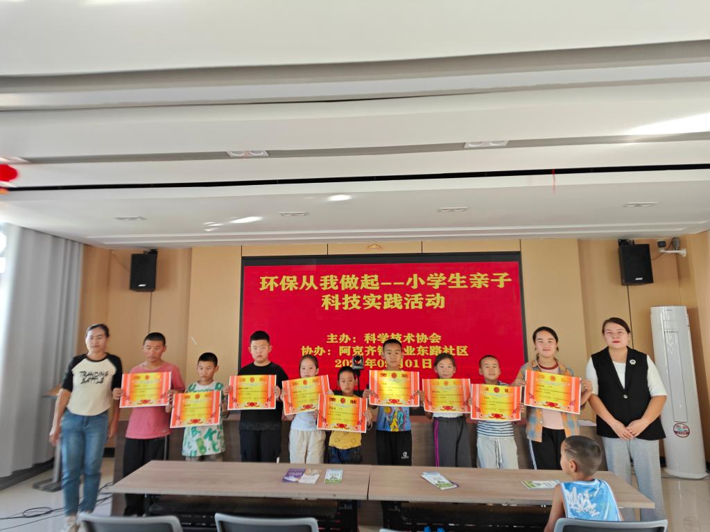 開學季,阿勒泰地區哈巴河縣科協聯合共建社區阿克齊鎮建業東路社區開展“環保從我做起”——小學生親子科技實踐活動,有社區9個轄區18個家庭參與活動。