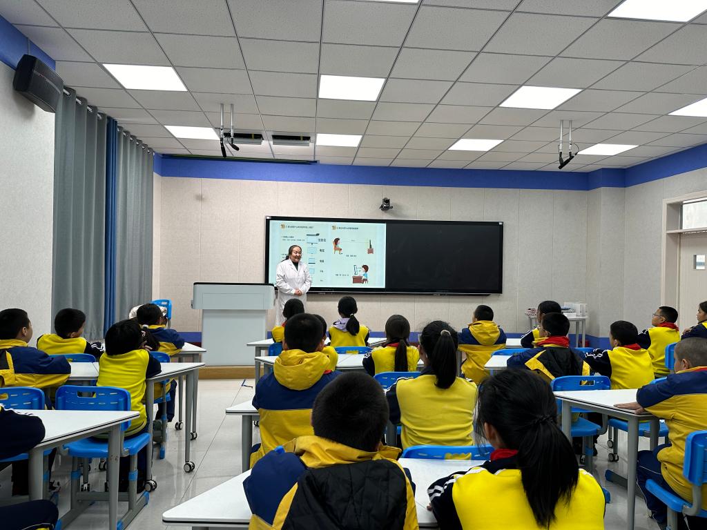 講座中,博樂市健康教育專家?guī)鞂<摇⒉肥屑膊☆A防控制中心副主任醫(yī)師吳英華,為同學們帶來一場知識量爆棚的健康講座。專家用風趣幽默、通俗易懂的表述,深入淺出地講解了視力問題和肥胖產(chǎn)生的原因、早期癥狀及常見誤區(qū)。圍繞近視防控,從讀寫距離、用眼時長,到戶外運動的作用等要點一一剖析,并著重強調飲食搭配及久坐不動的危害。同時,大力呼吁同學們樹立健康生活理念,培養(yǎng)良好作息與運動習慣。講座告一段落,精彩的互動環(huán)節(jié)火熱開場。同學們熱情高漲,紛紛舉手提問,拋出諸如“怎么選護眼燈”“課間休息多久對眼睛最好”這類緊貼日常的疑問,吳主任一一耐心解答,現(xiàn)場氛圍熱烈非常。