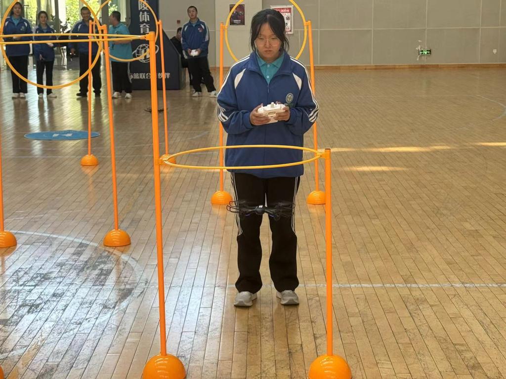 活動現場,烏蘇市科協工作人員帶來了多種類型的無人機,特邀航天創客奧林匹克大賽評委、全國航天模型科技輔導員培訓講師邢銳老師,給學校師生進行現場展示與講解,介紹無人機的結構、功能、操控方式和應用場景,讓學生直觀地感受無人機的魅力。在展示環節,烏蘇市第一中學無人機社團的同學們在專業人員的指導下,親自操控無人機通過障礙進行飛行,這不僅讓學生們感受到了科技的魅力,也提高了他們的動手能力和團隊協作能力。