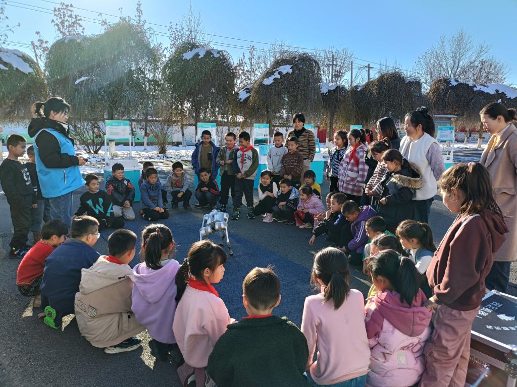 活動中,科普志愿者通過科學家精神展板向學生們講述了錢學森、鄧稼先、袁隆平、屠呦呦等科學家們從事科研工作的事跡,向學生們傳達“品德高尚、實事求是、堅韌不拔、刻苦學習、善于協作”等科學家精神,在他們幼小的心靈播下努力奮進的種子。隨后,地區科協和市科協的工作人員向學生們展示了“阿爾法機器人”舞蹈、機器狗互動等,學生們體驗了“VR”眼鏡以及益智類展具。