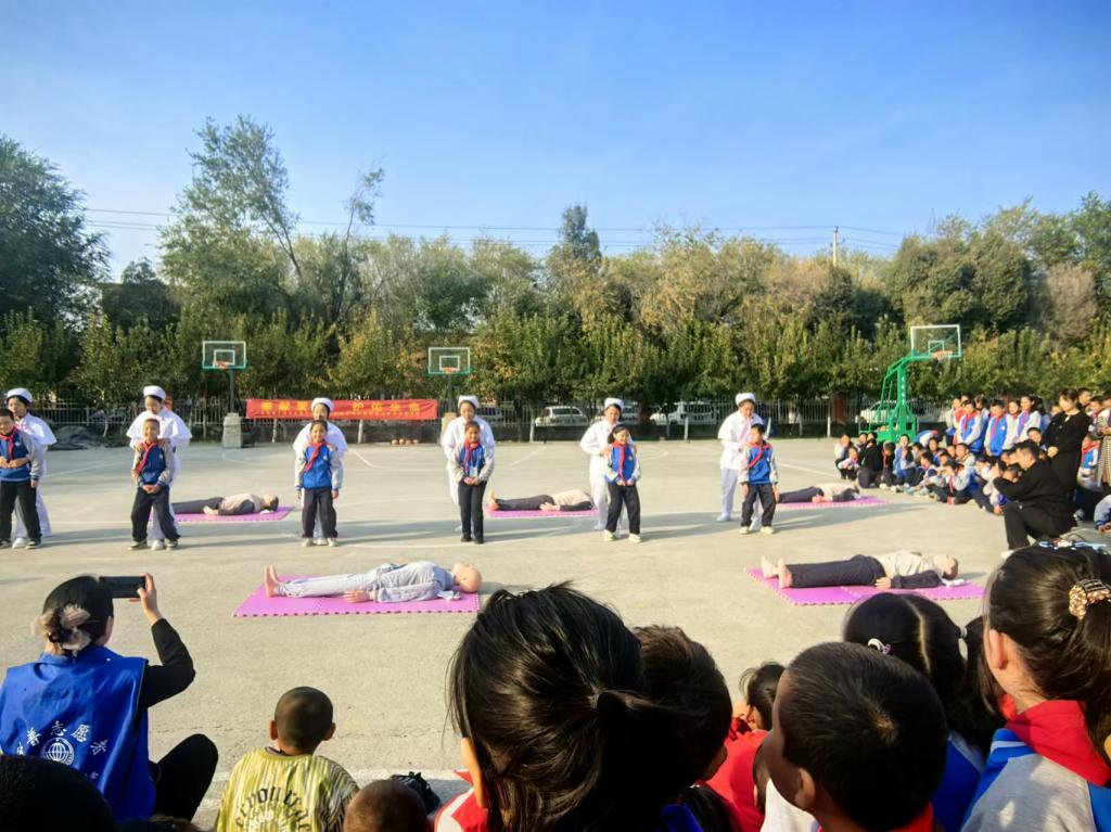在活動中烏蘇市中醫院的醫護們為師生們提供了應急救護科普課程,包括心肺復蘇、創傷救護基本技能以及海姆立克急救法等培訓,并為在校師生進行了講解和演示。
